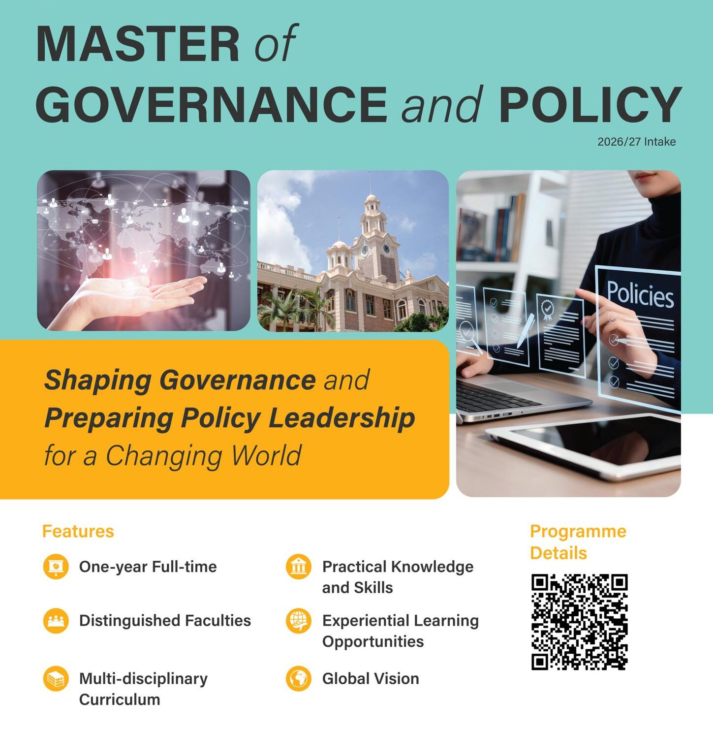 SGP offers the signature Master of Governance and Policy, developing purpose-driven leaders to solve complex challenges with evidence, strategy, and integrity. Anchored in Hong Kong, a global hub linking Asia and the world, SGP delivers multidisciplinary learning and research that advance effective governance, public trust, and real-world impact.