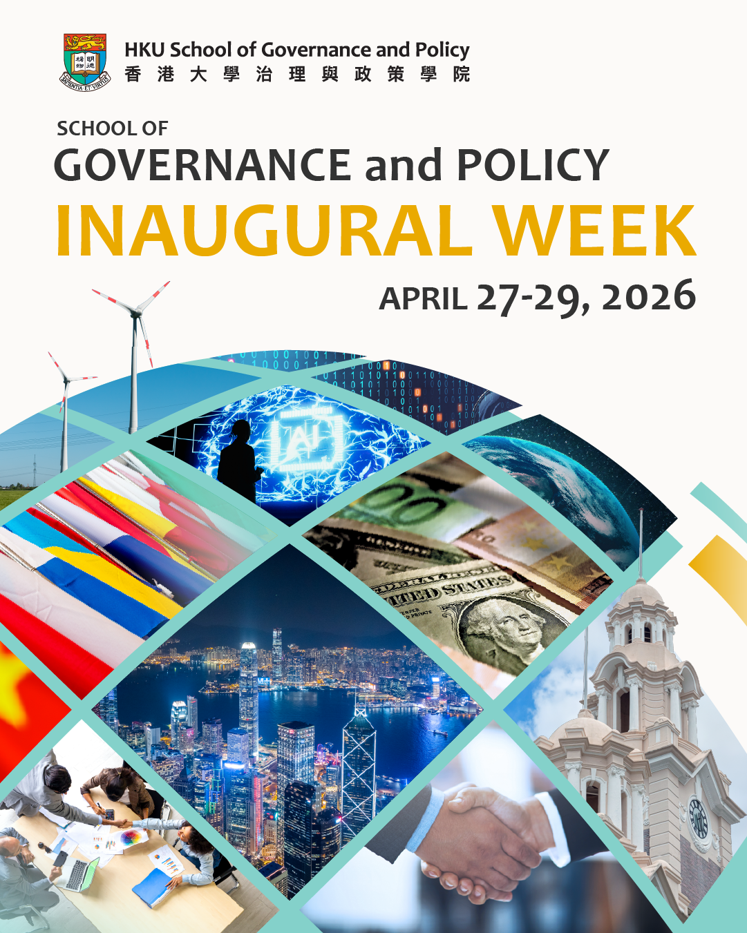 HKU School of Governance and Policy is delighted to announce the Inaugural Week of the HKU School of Governance and Policy, taking place from 27 to 29 April 2026. As a key part of the celebrations, we invite you to join our Open Dialogues on Global Policy Challenges and Solutions on 29 April, where leading scholars will address some of the most pressing issues facing our region and the world.